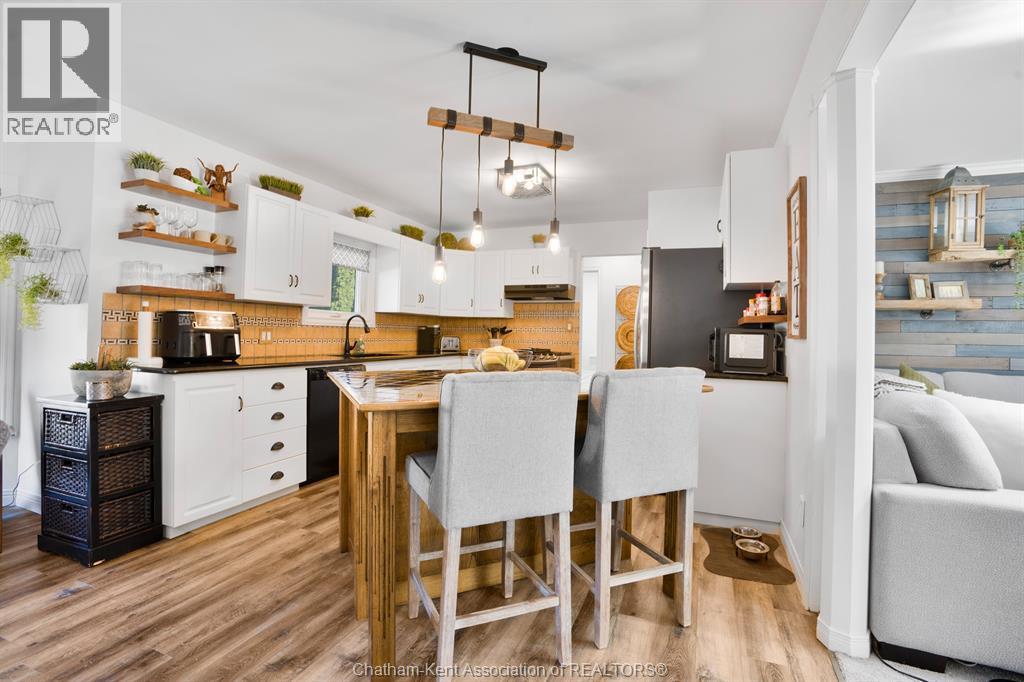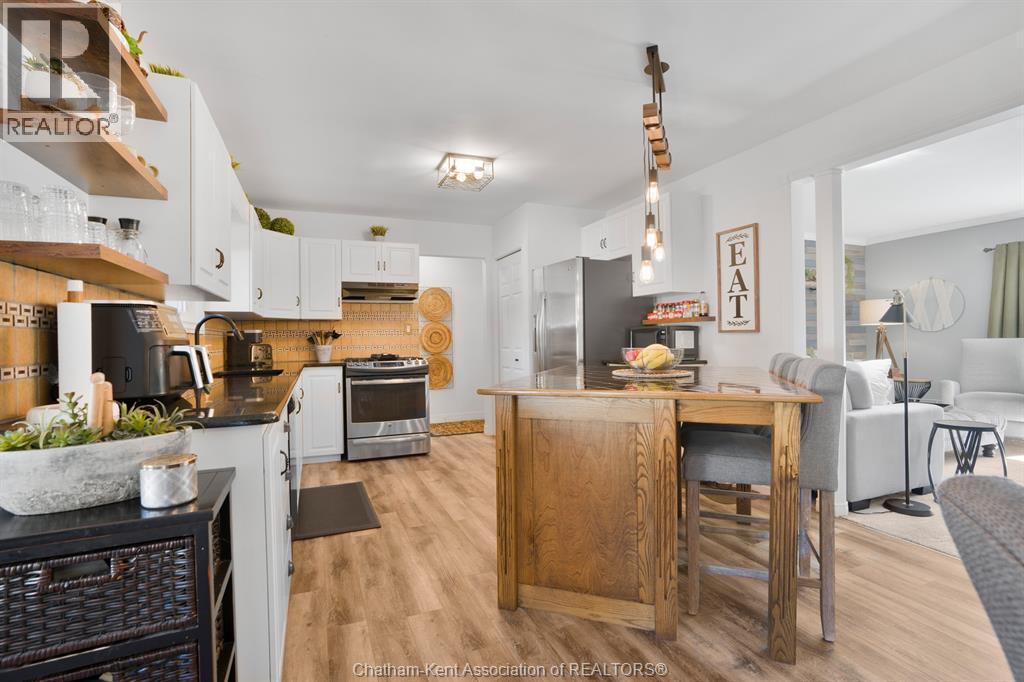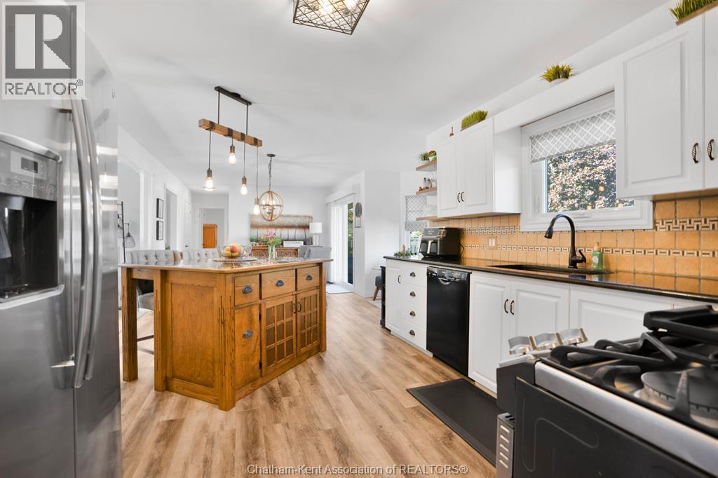 Welcome to this charming all-brick rancher located on Chatham’s desirable north side, just minutes from shopping, theatres, and grocery stores. This beautifully maintained home offers 3 bedrooms and 2 full bathrooms, including a private ensuite in the primary bedroom. Step inside to find a bright and inviting layout featuring new windows, new main-level flooring, and a spacious open-concept kitchen and dining area — perfect for family gatherings or entertaining. Enjoy the convenience of two separate living spaces, ideal for relaxation or creating a cozy family room. The full basement offers plenty of potential, with a partially finished area ready for your personal touch. Additional updates include a new hot water heater, ensuring peace of mind and efficiency. Outside, you’ll fall in love with the beautifully landscaped backyard, complete with a bubbling rock water feature, pergola, and fully fenced yard — your own private oasis for outdoor enjoyment. The attached garage with inside entry adds comfort and convenience to everyday living. A true gem in a fantastic location — this home blends comfort, updates, and charm in one perfect package. (id:4555)