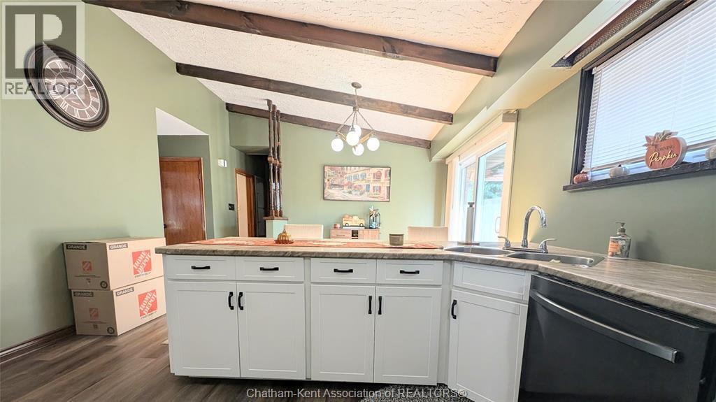 This beautifully updated 2-bedroom, 1-bathroom bungalow is move-in ready and located on a quiet, family-friendly street. You’ll be impressed the moment you arrive — from the long paved driveway to the massive oversized two-car garage (24x40), offering endless storage and workspace potential. Step inside to a bright and inviting main floor featuring a large livingroom and open-concept dining, and kitchen area. The brand-new kitchen shines with modern finishes and flows seamlessly to the living room, filled with natural light through the new windows and double sliding doors leading to a brand-new deck. The main floor also includes two cozy bedrooms and an updated 4-piece bath. The fully finished basement offers even more living space, with a large rec room, den, laundry area, and furnace room — perfect for relaxing, entertaining, or working from home.Recent updates include: new kitchen, roof, bathroom, flooring on both levels, windows, exterior doors, sliding patio doors, and deck. This home is the perfect blend of comfort, functionality, and style — ideal for first-time buyers, downsizers, or anyone looking for a move-in-ready home with an incredible garage space. (id:4555)