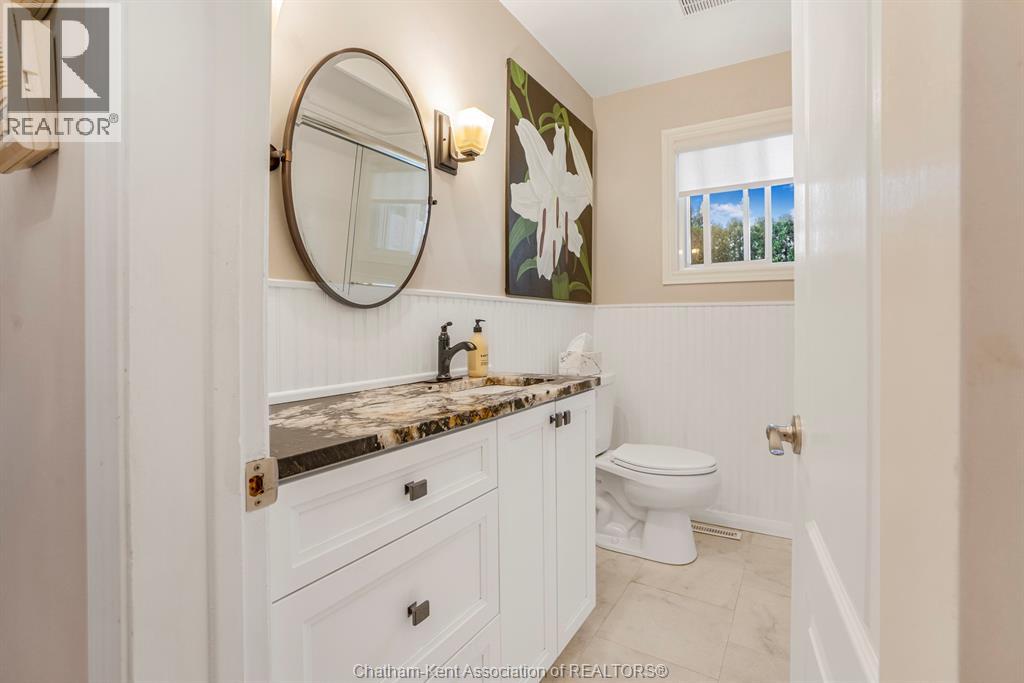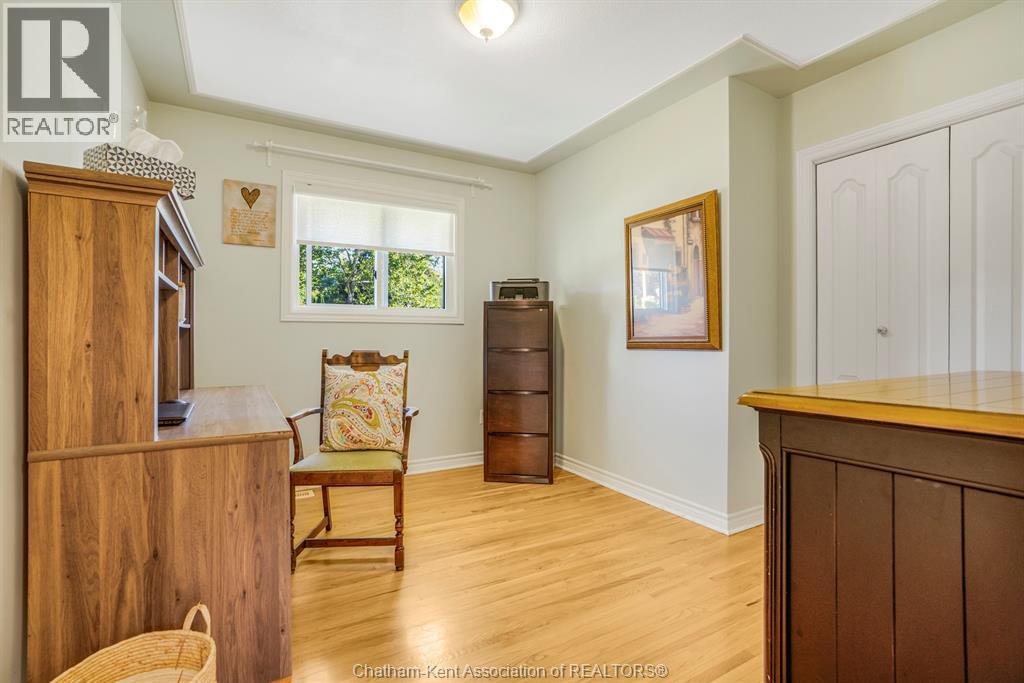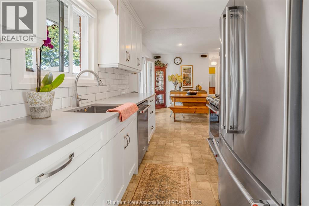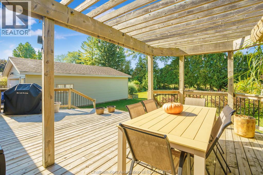Welcome to this beautifully updated brick rancher located on Chatham’s desirable Southside, just minutes from walking paths, grocery stores, the golf course, and easy access to Highway 401. This charming home sits on a massive fully fenced yard, offering plenty of space to relax, garden, or entertain. Enjoy outdoor living on the large deck and semi-covered patio, perfect for summer evenings or weekend barbecues. A detached double car garage provides ample parking and storage. Inside, the main level features 2 bedrooms, including a very spacious primary, and an open-concept kitchen and dining area with gorgeous white cabinetry. The cozy gas fireplace adds warmth and charm to the living space, creating a comfortable and inviting atmosphere. The finished basement offers even more living space, with a rec room and a possible additional bedroom — ideal for guests, a home office, or hobbies. Situated on a quiet street in a great neighbourhood, this home has been updated throughout and is completely move-in ready. Just unpack and enjoy easy, modern living in one of Chatham’s most convenient locations! (id:4555)