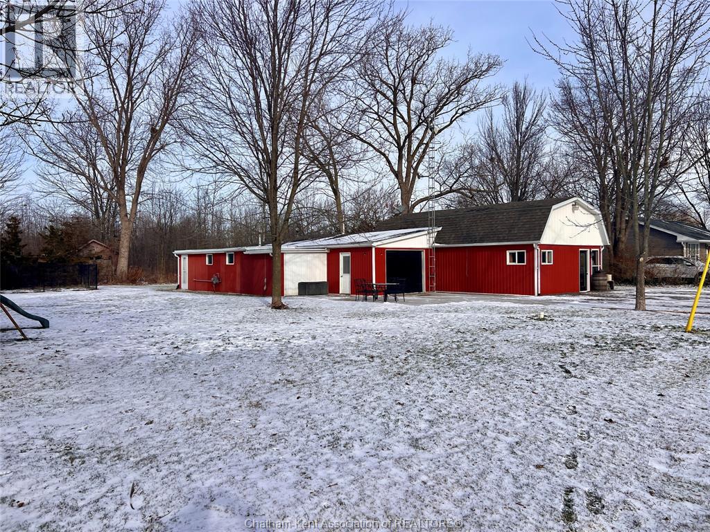 Quaint Barndominium on a double lot with a double garage which has room for 3 vehicles and is heated. 2 bedrooms, 1 bath. Beautiful accent walls throughout. Open concept design which has the living, dining and European kitchen with breakfast bar. Large foyer entrance. New plumbing and heating in 2021. Large primary bedroom with a walk in closet and man door to the backyard pergola with a fire pit. 3 car gravel driveway. Conveniently located 7 minutes from Chatham and 6 minutes to Blenheim. Two new gas stations in Charing Cross with a Mr Sub and Beer outlets. Riding tracks just 2 minutes away. Storage shed with a dog pen. Water heater is owned. Yard backs onto a bush. This unique package has so much to offer with a very attractive price!! Call, text or email today for your personal viewing. Nothing to do here but move your things in! (id:4555)